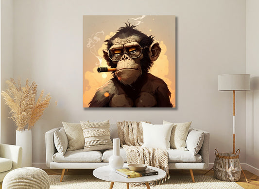 Hippy Monkey Framed Canvas Painting