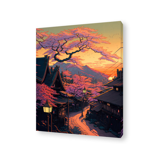 Japanese Town Framed Canvas Painting
